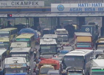 Hal tersebut terlihat dari antrian yang terjadi ketika keluar pintu tol. Arus lalu lintas yang didominasi mobil pribadi dan bus antarkota tampak padat merayap.