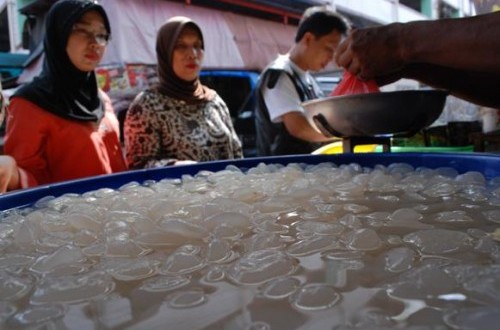 "Kebanyakan yang beli ibu-ibu, biasanya untuk persiapan berbuka ada juga yang untuk dijual lagi buat es cendol," katanya. Kolang kaling tersebut dijual rata-rata seharga Rp8.000,- per kilo, sedangkan cincau bervariasi mulai dari yang terendah Rp1.000,- hingga Rp5.000,-.