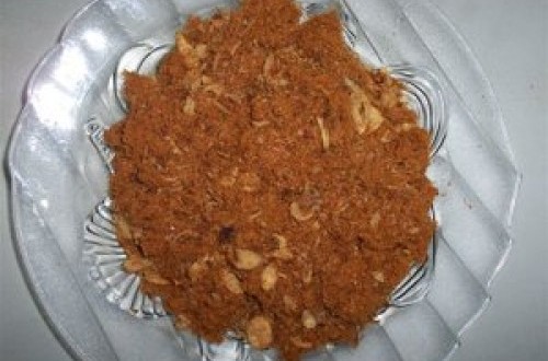 2. Haluskan bawang merah, bawang putih, kemiri, gula merah, dan garam. Campurkan dengan santan kental dan daging. Masak sampai santan habis, lalu tiriskan.