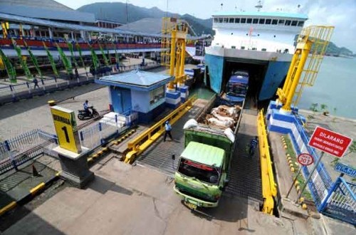Terlihat satu per satu kendaraan pemudik mulai memasuki deck parkir KMP. Tak hanya kendaraan-kendaraan kecil, operasi pertama penyeberangan dermaga V ini pun, didominasi oleh kendaraan besar seperti truk sedang, truk pengangkut barang, serta bus penumpang.