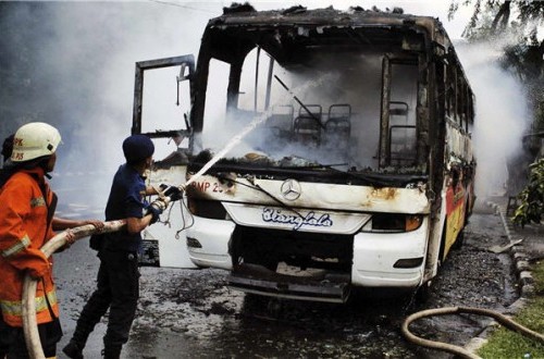 Laporan Antara menyebutkan bus bernopol BE-2082-C itu mengalami kebakaran pada Selasa petang.