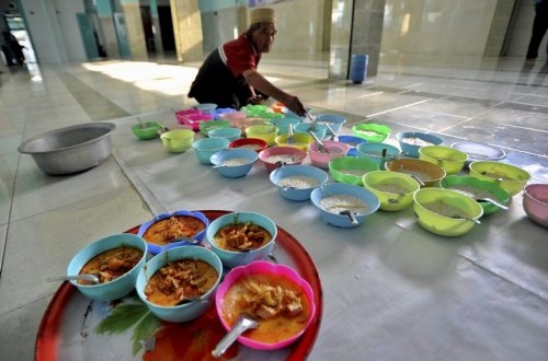 REPUBLIKA.CO.ID, SEMARANG -- Pengurus masjid mempersiapkan beberapa mangkuk bubur India untuk hidangan berbuka puasa, di Masjid Jami Pekojan Semarang, Senin (30/6).