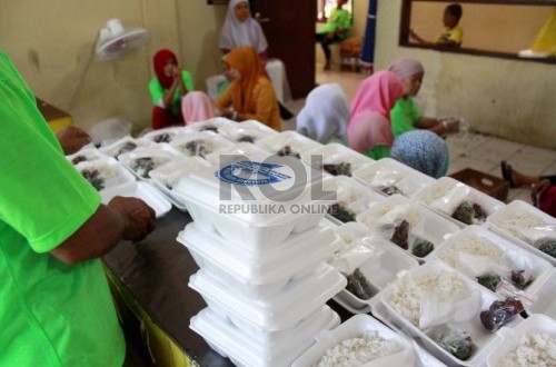 Petugas yang berjumlah 45 orang memasak sebanyak 3000 nasi kotakyang akan dibagikan kepada umat muslim saat berbuka puasa di Masjid Istiqlal.