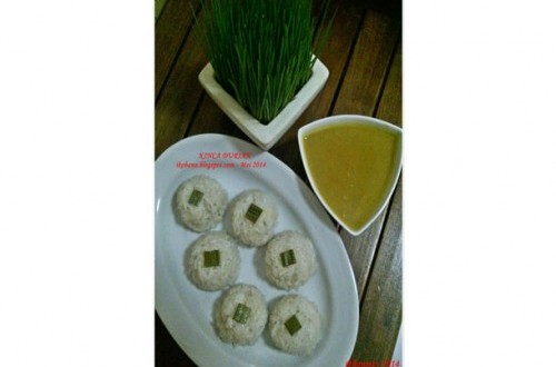 * Cetak ketan di mangkuk kecil, tangkup ke piring saji . Tuang kuah/saus. siap dihidangkan