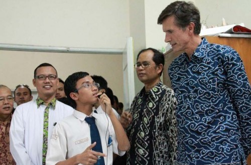 Tak hanya mengunjungi berbagai fasilitas di sekolah gratis tersebut, Blake pun sempat berdialog dengan para siswa yang berasal dari berbagai daerah di Tanah Air.