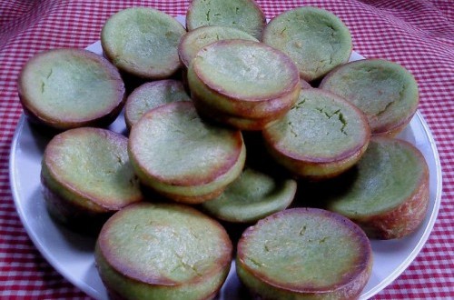 Seperti rupa dan cita rasa sarikaya? Tampil berbalut warna hijau, sarikaya dikemas dalam mangkuk plastik berukuran kecil.