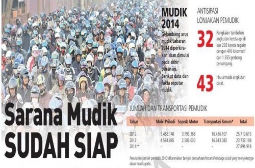 Humas PT Angkutan Sungai Danau Penyeberangan (ASDP) Indonesia Ferry Cabang Merak, Mario S Utomo menyatakan, penyeberang pada arus balik 2014 bisa mencapai satu juta jiwa. “Puncaknya arus mudik kali ini diperkirakan pada hari Jumat depan,” ujar Mario.
