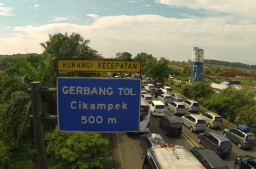 Saat terjadi penumpukan kendaraan di jalur Pertigaan Mutiara-Pasar Cikampek menuju jalur Pantura, arus kembali diarahkan ke simpang Jomin melintasi jalan raya By Pass Jomin.