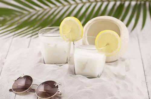 Masukkan daging kelapa ke dalam wadah. Tambahkan perasan jeruk lemon sedikit saja untuk memberi kesegaran. Kemudian, tuang air kelapa siap pakai dalam kemasan. Tambahkan es batu lalu siram susu kental manis. Minuman siap disajikan.