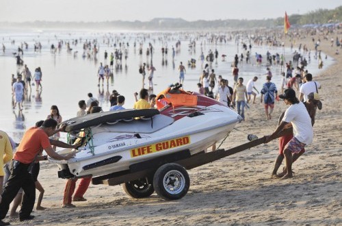 "Setiap harinya petugas sebenarnya selalu siaga, namun dalam liburan Idul Fitri yang disusul dengan cuti bersama lebih dimantapkan untuk memberikan rasa aman dan nyaman kepada pengunjung yang menikmati deburan ombak maupun yang bermain papan selancar di atas gulungan ombak yang dahyat," ujar Ketut Ipel.