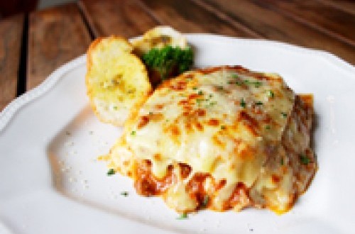 Menu bernama Elise's Lasagna itu kaya akan keju mozzarella yang membungkus tiap lapisan roti dan daging di bawahnya.