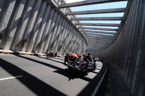 REPUBLIKA.CO.ID, NAGREG --- Terowongan Jalan Lingkar Nagreg di wilayah Kabupaten Bandung menjadi tempat selfi para pemudik khususnya pengguna sepeda motor yang melintas di jalur itu, Senin (20/7). Hampir setiap hari pada musim arus milir Lebaran, terowongan unik di puncak pendakian tanjakan lingkar Nagreg itu dijadikan tempat berfoto dengan latar belakang dinding terowongan.