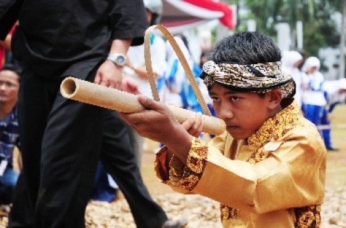 Tidak hanya anak-anak yang menghabiskan waktu sore menunggu bedug Maghrib dengan bermain bedil lodong. Puluhan orang dewasa dan orang tua pun terlibat.