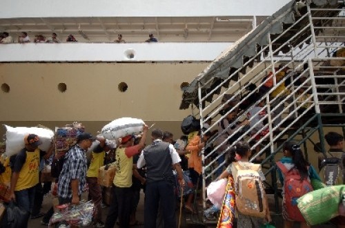 REPUBLIKA.CO.ID, SURABAYA -- Arus mudik Lebaran 2017 mulai terlihat di Pelabuhan Tanjung Perak Surabaya, seiring dengan berlabuhnya Kapal Motor (KM) Labobar yang mengangkut 4.593 orang, Ahad (18/6) sore.