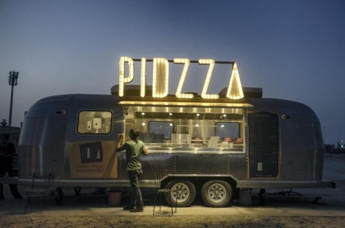 Deretan bola lampu vintage berkelap-kelip di sekitar jendela pemesanan truk Healthy Way. Sebuah truk yang melayani berbagai alternatif makanan sehat. Meskipun shift saat Ramadhan berakhir pada jam dua pagi, koki mengatakan mereka lebih suka bekerja di truk makanan daripada di restoran. Suasana santai karavan adalah hal yang memikat Franklin Mbema, supervisor Caffeino, untuk bekerja di truk.