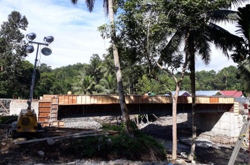 Pantauan Republika hari ini, Sabtu (18/5) di lokasi pembangunan, jembatan tinggal penyelesaian tahap akhir di mana pencoran sudah selesai. Alat-alat berat yang selama ini digunakan untuk konstruksi jembatan sudah tidak ada lagi. Tinggal beberapa alat kecil seperti mesin pengecor dan beberapa orang pekerja yang masih mengerjakan bagian-bagian kecil yang belum selesai.