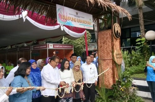 REPUBLIKA.CO.ID, JAKARTA -- Kementerian Koperasi, Usaha Kecil dan Menengah (Kemenkop UKM) membuka Kampung Ramadhan 2019 di area Kantro Pusat Kemenkop UKM, Jakarta, Senin (20/5). Perhelatan ini telah menjadi acara rutin tahunan untuk alternatif pemenuhan kebutuhan masyarakat sekitar.