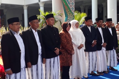 Sebelum membayar zakat, Ketua Umum PP Muslimat NU tersebut secara simbolis menyerahkan tunjangan hari raya (THR) untuk aparatur sipil negara (ASN), termasuk tambahan honor bagi pegawai tidak tetap.