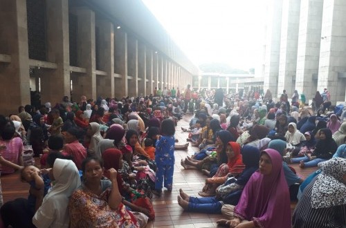 REPUBLIKA.CO.ID, JAKARTA -- Ribuan jamaah Masjid Istiqlal bersiap berbuka puasa bersama terakhir pada Ramadhan tahun ini, Selasa, (4/6).