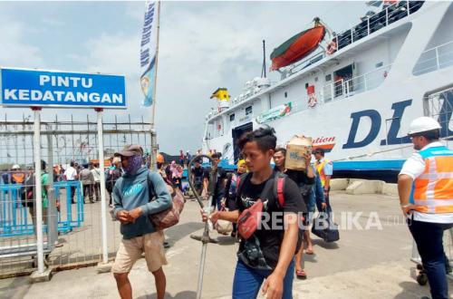 REPUBLIKA.CO.ID, SEMARANG -- Kedatangan pemudik dengan transportasi laut di Terminal Penumpang Pelabuhan Tanjung Emas Semarang mulai terpantau pada H-13 Idul Fitri 1444 Hijriyah (2023) atau Ahad (9/4/2023). Meski begitu, secara volume, pergerakan penumpang pada H-13 Idul Fitri di Terminal Penumpang Pelabuhan Tanjung Emas masih berada di bawah pergerakan penumpang pada arus mudik H-13 tahun 2022.