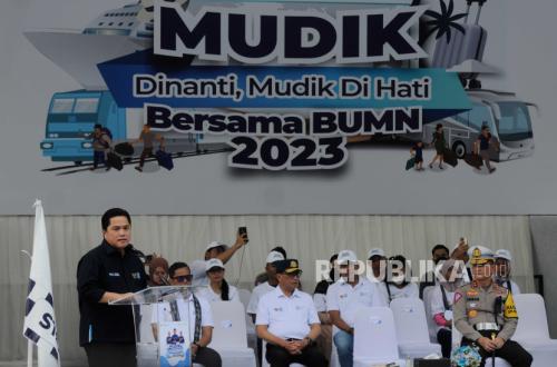 REPUBLIKA.CO.ID, JAKARTA -- Menteri Badan Usaha Milik Negara (BUMN) Erick Thohir menyampaikan program mudik gratis bersama BUMN 2023 adalah wujud hadirnya pemerintah untuk melayani masyarakat. Erick mengucapkan terima kasih atas dukungan Kemenhub dan Korlantas Polri dalam pelepasan bus mudik bersama BUMN 2023 di Area Plaza Barat, Gelora Bung Karno (GBK) di Jakarta, Selasa (18/4/2023).
