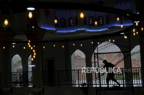 REPUBLIKA.CO.ID, JAKARTA -- Pekerja beraktivitas di Masjid Jami Al-Fajri, Pasar Minggu, Jakarta Selatan, Kamis (29/2/2024).