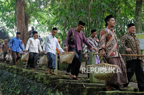 REPUBLIKA.CO.ID, TEMANGGUNG -- Sejumlah warga berdoa bersama saat tradisi Nyadran Suroloyo Sepujud di Soropadan, Pringsurat, Temanggung, Jawa Tengah, Jumat (1/3/2024). Tradisi Nyadran rutin dilaksanakan masyarakat setempat setiap Jumat Pahing bulan Sya'ban untuk menyambut Ramadhan sekaligus mendoakan arwah leluhur.