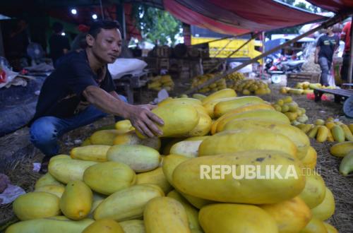 REPUBLIKA.CO.ID, JAKARTA -- Pedagang menyusun timun suri yang dijual di Pasar Induk Kramat Jati, Jakarta, Kamis (13/3/2024). Memasuki bulan Ramadhan, omzet penjualan timun suri yang dijual seharga Rp 7.000 per kilogram itu meningkat karena pada umumnya masyarakat membeli timun suri sebagai salah satu santapan untuk berbuka puasa.