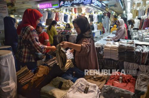 REPUBLIKA.CO.ID, JAKARTA -- Pedagang menanta busana muslim di Blok A Pasar Tanah Abang, Jakarta, Kamis,(14/3/2024). Menurut pedagang penjualan busana Muslim mengalami peningkatan pada awal bulan suci Ramadhan. Diperkirakan penjualan akan kembali mengalami peningkatan menjelang Hari Raya Idul Fitri.