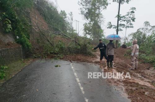 Ia menyampaikan kejadian longsor di jalan raya itu setelah hujan deras mengguyur wilayah tersebut dengan intensitas tinggi mengakibatkan tanah tebing retak hingga akhirnya longsor.